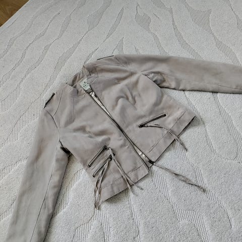 Naisten vetoketjullinen mokkatakki, jossa on väljä istuvuus.