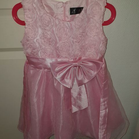 Vaaleanpunainen kukkasomisteilla. Kerran käytetty. Koko 130cm.