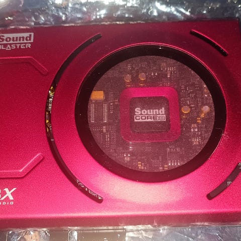 Creative Sound Blaster Audigy FX V2 äänikortti, PCIe-liitännällä. Kortissa on useita äänitulo- ja -lähtöliitäntöjä.