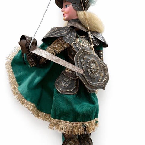 Käsin puusta ja kipsistä veistetty marionetti 1900-luvun puoliväli.