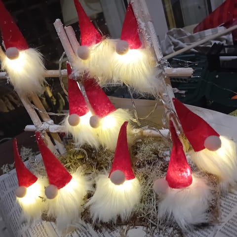 Joulupallot ja -valot vaasissa. Vaasin korkeus 65cm. Valojen sävy lämmin valkoinen. Vain nouto.