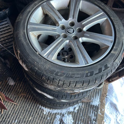 Myyntiin hyväkuntoinen alunperin Jaguaarin alumiinivannesarja hyväkuntoisilla kesärenkailla (3kpl Barum ja 1kpl Dynamo UUSI) 235/40R18