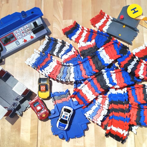 Smoby autorata taaperolle. Autotalli sisältää autokannen korjaustöitä varten, autopesulan, bensapumpun ja helikopterikentän. Pakettiin sisältyy lisäksi yksi leluauto ja helikopteri.