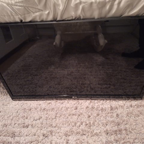 Toimiva televisio ja kaukosäädin taustavalolla. LG 42. Hd kanavatkin toimii. Mukaan myös pienehkö tv taso ja antennijohto.