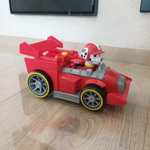 Myydään Ryhmä Hau Samppa autorata. Toimiva, paloauton päällä olevaa nappia lyödään nyrkillä jolloin auto lähtee vauhdilla ajamaan radan läpi. Paloautosta ja radasta tarrat hieman kuluneet.