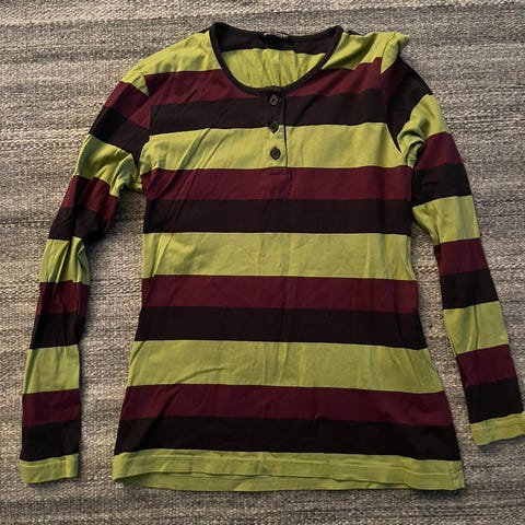 Marimekko, koko S. Beige pallokuvio, musta pohja. Hieman pesussa värit haalistuneet. Yleisilme siisti.