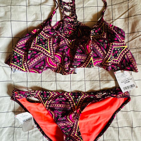 Uudet bikinit ostettu viime kesänä Kreikasta. Kokoa 48 , joka vastaa mielestäni kokoa L.