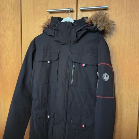 Erittäin lämmin ja paksu miesten Luhdan parkatakki. Vähän taskuissa ja hihoissa tummuutta, mutta lähes huomaamaton.