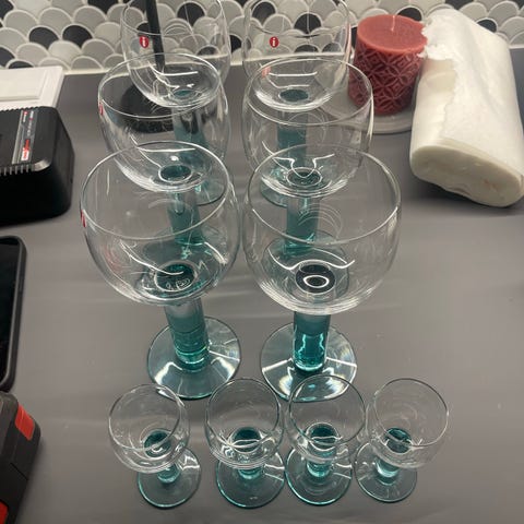 Iittala Mondo snapsilasit 6kpl alkuperäispakkauksissaan. Värinä on vihreä ja kunto hyvä.