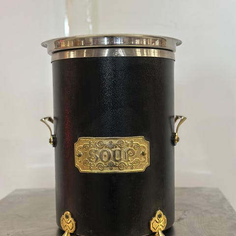 Iso ruostumatonta terästä oleva kattila. Ollut sammutus harjoituksissa, sisällä poltettu sinolia. Sisältä nokinen.