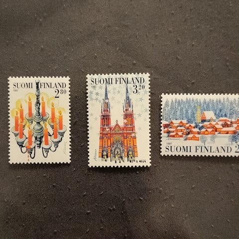 Kolmekymmentä erilaista suomalaista joulupostimerkkiä 1970-vuosikymmenestä alkaen