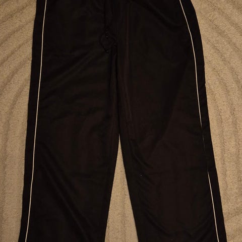 Myydään lämpimät verkkahousut, taskuissa vetoketjut.