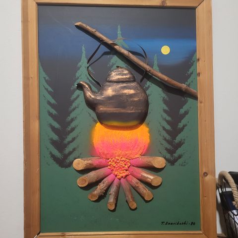 Myydään perhosteemainen vintage seinävaate/sisustustaulu 1960-luvulta. Pituus 183 cm ja korkeus 33 cm. Taustalevy kudoksen sisällä ohutta vaneria.