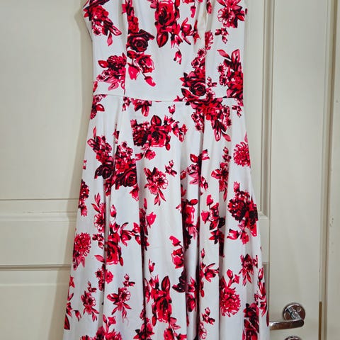 Hearts & Roses London. Valkoinen kellohelmainen kukkamekko, jossa taskut. Koko S. Käytetty muutaman kerran.