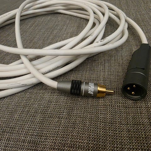 Length: 2 m,2 x Mono jacks (L + R) < > 1 x XLR male,Red tip jack > XLR pin 3