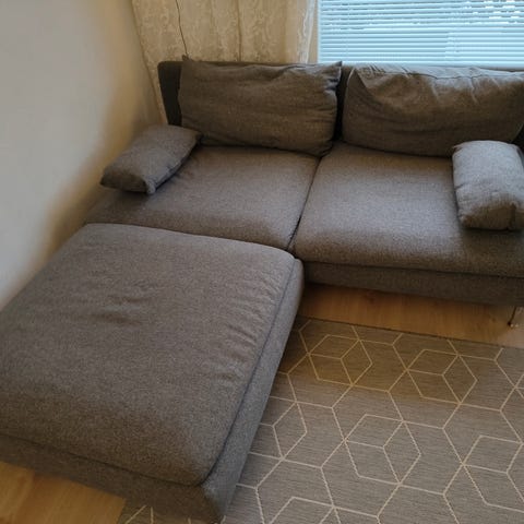 Istuintyynyissä vetoketjuossa ongelmaa, ei näy tai vaikuta mukavuuteen. Kangas on finnsta- valkoinen, ei myydä enää ikeassa. Pesu jää ostajalle. Ei suurimpia jälkiä jotka ei pesussa lähtis. NOUTO. Ei mahdollista kuljettaa.