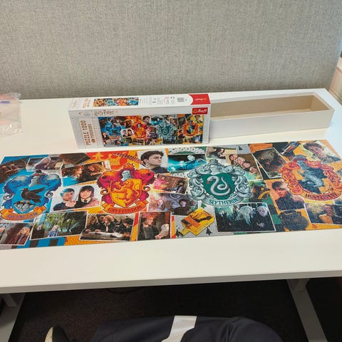 Kerran koottu Harry Potter palapeli. Kaikki palat tallessa ja pussitettu.