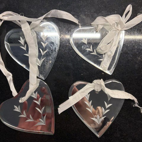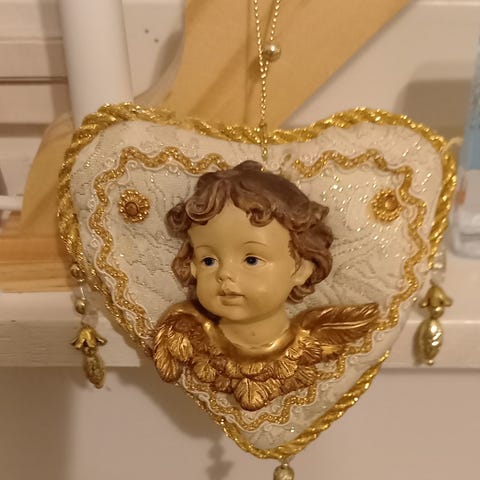 Koristeellinen sydän joulusesonkiin, valmistettu valkoiseksi maalatusta punotusta materiaalista, koristeltu violetilla nauhalla. Sopii joulukoristeeksi kotiin tai lahjaksi. Voit itse myös koristella haluamallasi tavalla , nouto kaukovainio 8€ postitus 8€ .