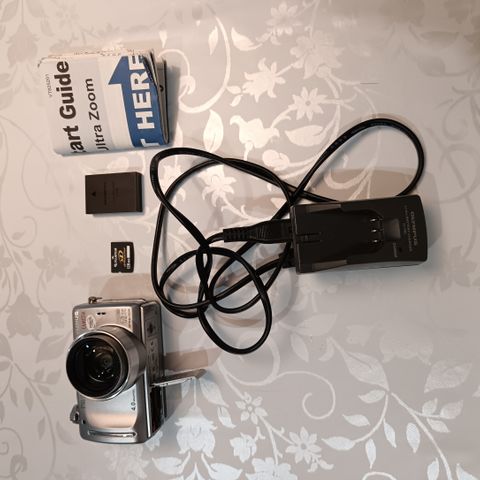 Hyväkuntoinen Olympus mini digital kamera.Mukana akun laturi,välijohto tietokoneeseen ja muistikortti.
