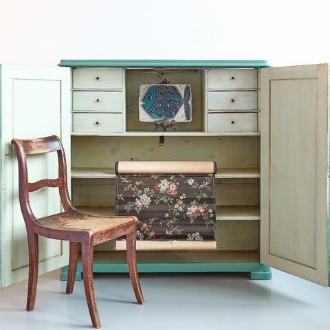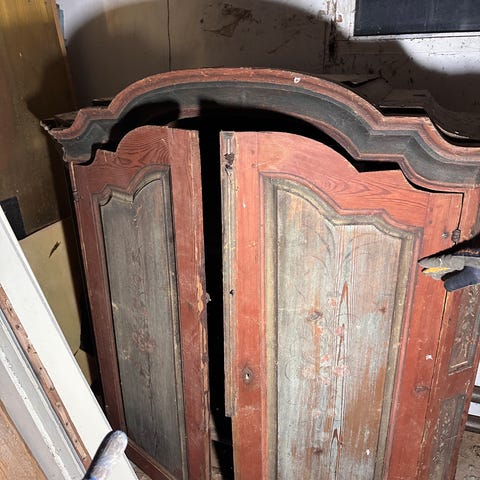 Korkea talonpoikaiskaappi Heinolasta vuodelta 1824