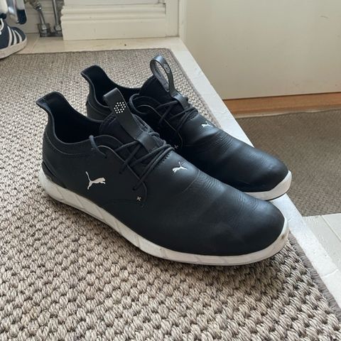 Puma miesten golfkengät, koko 44. Kengissä musta päällinen ja valkoinen pohja. Sopivat golfkäyttöön, jossa tarvitaan hyvää pitoa ja mukavuutta.