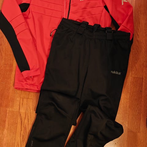 Myydään hyväkuntoinen Lasten Rukka hiihtopuku. Housuissa on henkselit. Koko 128cm.