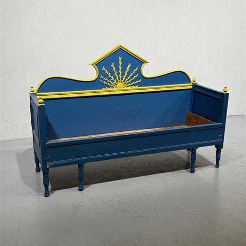 Levitettävä n.110 vuotta vanha talonpoikaistyylinen täyspuinen sohva. Nukkumatilan pituus n.160 cm.