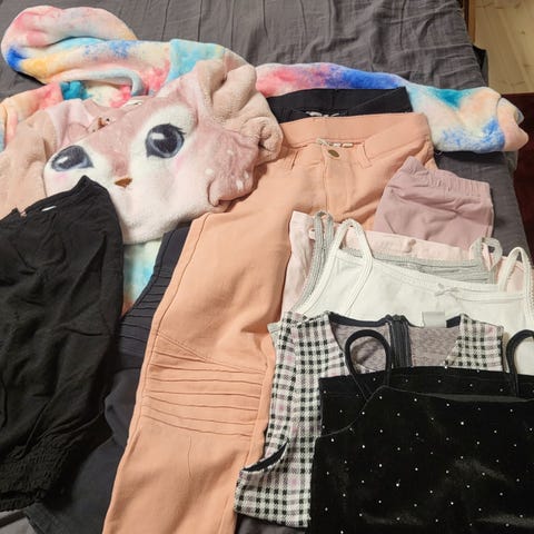 Lindex, gugguu, papu Metsola jne lastenvaatteet, koko 122-140, suurin osa 134-140 kokoisia. Vaatteet ovat kirjavia ja sisältävät erilaisia materiaaleja ja värejä. Sopivat eri tilanteisiin ja vuodenaikoihin lasten käytettäväksi. Ehjiä mutta käytön jälkeä löytyy.