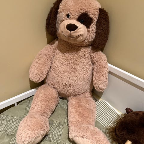 Korkeus istualtaan noin 80cm. Seisten noin 120cm. Kunto erinomainen, ollut lähinnä lapsen sängyssä koristeena.