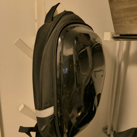 Uusi moottoripyöräreppu on kovakuorinen, vedenkestävä.