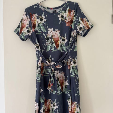 Kaikon ihana pilkullinen tummanvihreä mekko. 95% puuvillaa 5% elastaania. Käytettynä ostettu ja muutamasti pidetty, tosi hyväkuntoinen. Aavistus pesukulumaa kaula-aukossa, jota ei käytössä huomannut.