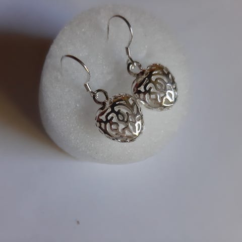 Hopeanväriset pitsimäiset pisarat pisaran pituus 3 cm + koukku ei leimaa käyttämättömät korupussi tule mukaan kulkeutuu sovittaessa lähialueelle + postitus yht 17 €
