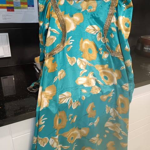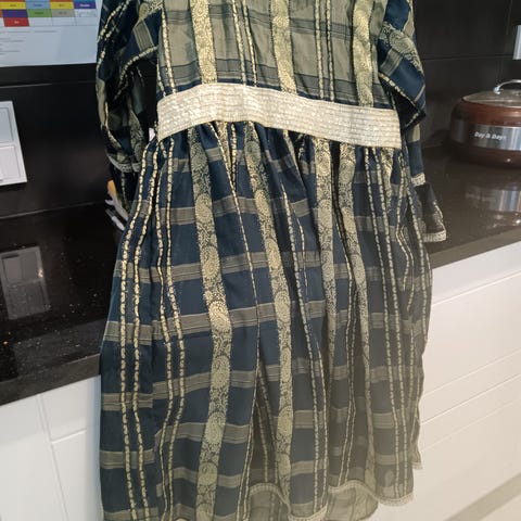Koko 1/S, pituus sivusta noin 62 cm, vyötärö noin 78 cm.