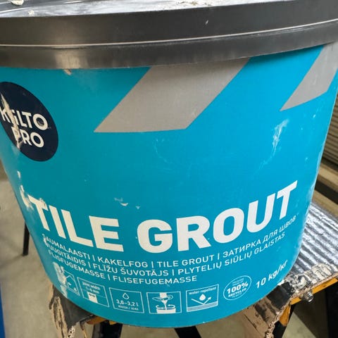 Timpuri Laattaliima on laattaliima, joka soveltuu erilaisten laattojen kiinnittämiseen. Pakkauskoko on 1,4 kg. Tuote on tarkoitettu laatoitustöihin. Käytetty kolmen laatan liimaamiseen eli melkein täynnä. Uuden hinta 11,99€.