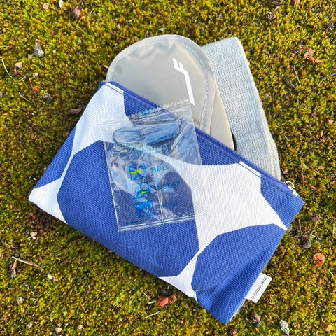 Myydään Marimekko Kivet pussukka. Kunto uusi, omassa muovipakkauksessa. Sisältö: sukat, korvatulpat, silmäsuoja maski.