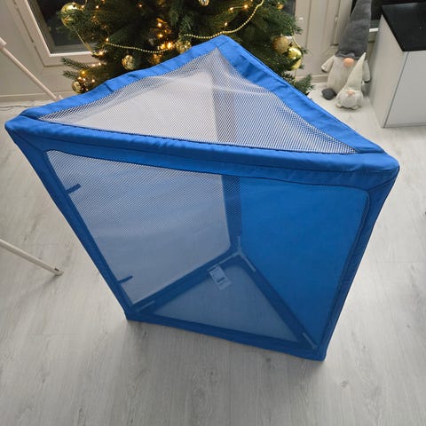 Pari kertaa käytetty Ikean Sportslig maali, joka soveltuu myös pallojen säilytykseen.