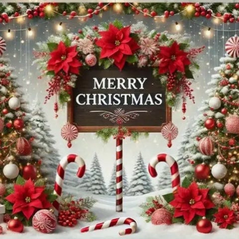Pellavakankaalle kirjottu jouluinen seinävaate.