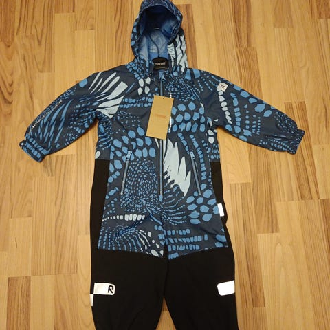 Haalarissa on todella miellyttävä sileä neulosvuori, ja siihen saa Reiman fleecehaalarin kiinni. Vedenpitävä, hengittävä, kaksi vetoketjutaskua, säädettävät hihansuut ja lahkeensuut. Hyväkuntoiset silikonilenksut.