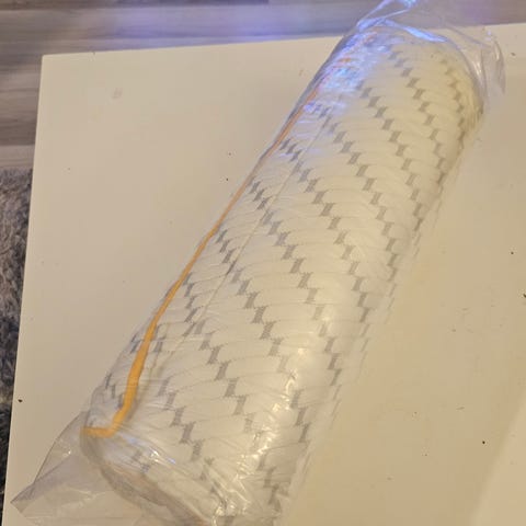 2 yötä ollut käytössä tyynyliinan kanssa, joten aivan uuden veroinen. Oli minulle vähän liian korkea, mutta jos pidät korkeasta tyynystä, tää on ihana, koska muotoutuu oman pään mukaan. Nouto Turusta.