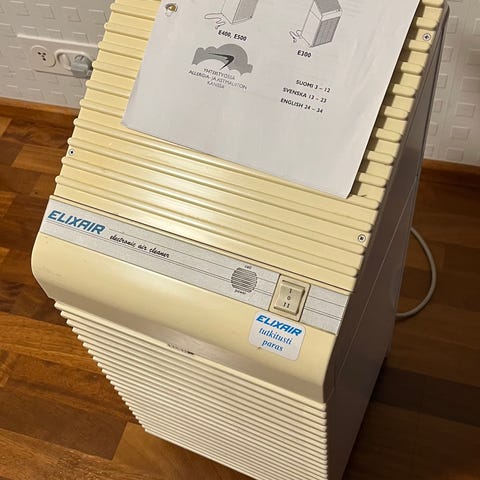Ok kuntoinen Elixair ilmanpuhdistin. Maksimissaan 25m2 tilaan.
