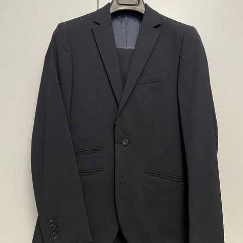 Myydään siisti, miesten Riley-merkin puku. Musta slim fit.