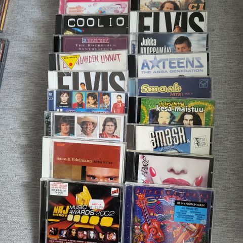 Myydään kasa cd levyjä. Suurin osa levyistä vuosituhannen vaihteesta. Koteloissa enemmän ja vähemmän sanomista. Myydään pompsina. Levyjä taisi olla 34kpl