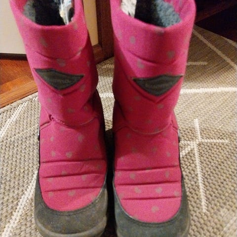 Kuoma lasten talvikengät, koko 30. Lämmin vuori. Muutoin ehjät ja siistit, mutta vuoressa kantapään kohdilla kulumaa. Tämä huomioitu hinnassa.