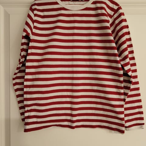 Marimekon punaraidallinen trikoomekko. Koko 128 - 134cm, 8 - 9v. Taskut edessä. Käytetty mutta vielä oikein hyväkuntoinen.