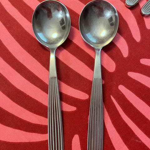Vanhaa tuotantoa olevat ruokailuvälineet.