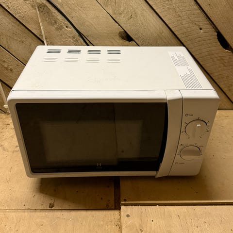 Housen mikroaaltouuni. Käytetty aiemmin pari vuotta, mutta vuoden ollut häkkivarastossa käyttämättömänä. Pieniä käytönjälkiä on, mutta laite toimii hyvin.