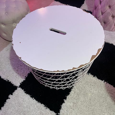 Annetaan kuvan sivu-/kukkapöytä. Ostettu ikeasta. Ehjä, mutta voisi kaivata maalausta kun pinta kärsinyt.