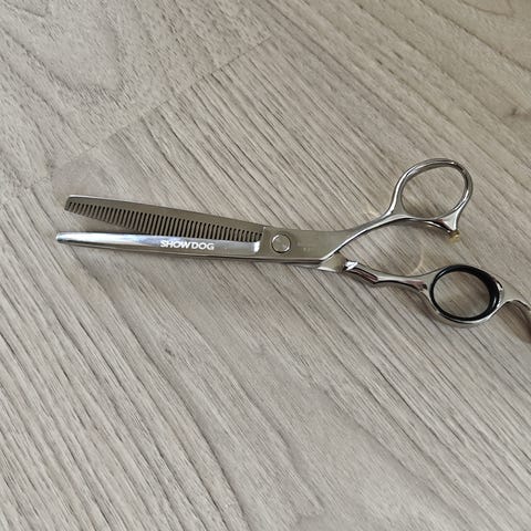 Pentu koiralle ostettu trimmauksen opetteluun, mutta ovat jääneet käyttämättä tarpeettomana. Kerran leikattu häntäkarvoja. Toisen sormenreiän musta muovinen suoja/tiiviste irtoaa, mutta liimaamalla saa varmastikin pysymään. Ilman sitäkin käyttökelpoiset, mutta peukalon ote hieman väljempi. Kulkeutuu Helsinkiin.