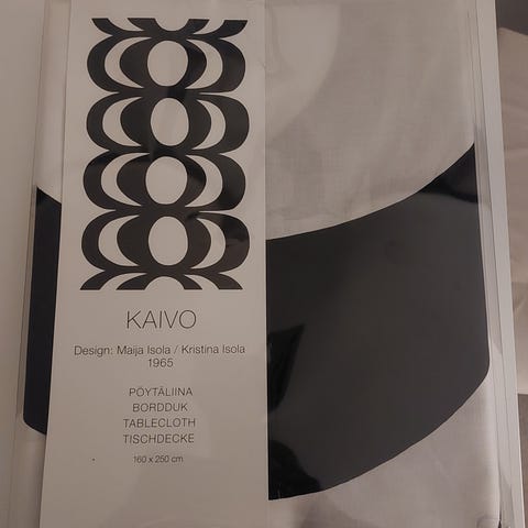 Myydään upea Marimekon Maija Isolan 1965 suunnittelema Kaivo kangas/pöytäliinana meillä toiminut 2x juhlissa ollut pöytäliina. 100% puuvillaa, pesu 60°.