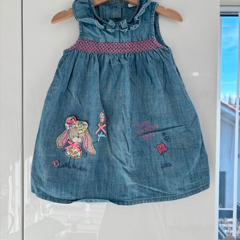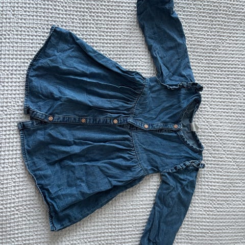 Lindexin sininen farkkumekko. Joustavaa kangasta, koko 86.